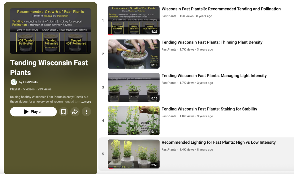 For tips about tending Fast Plants throughout their life cycle, we also have a PDF in our digital library and a YouTube playlist with multiple videos about caring for Fast Plants.